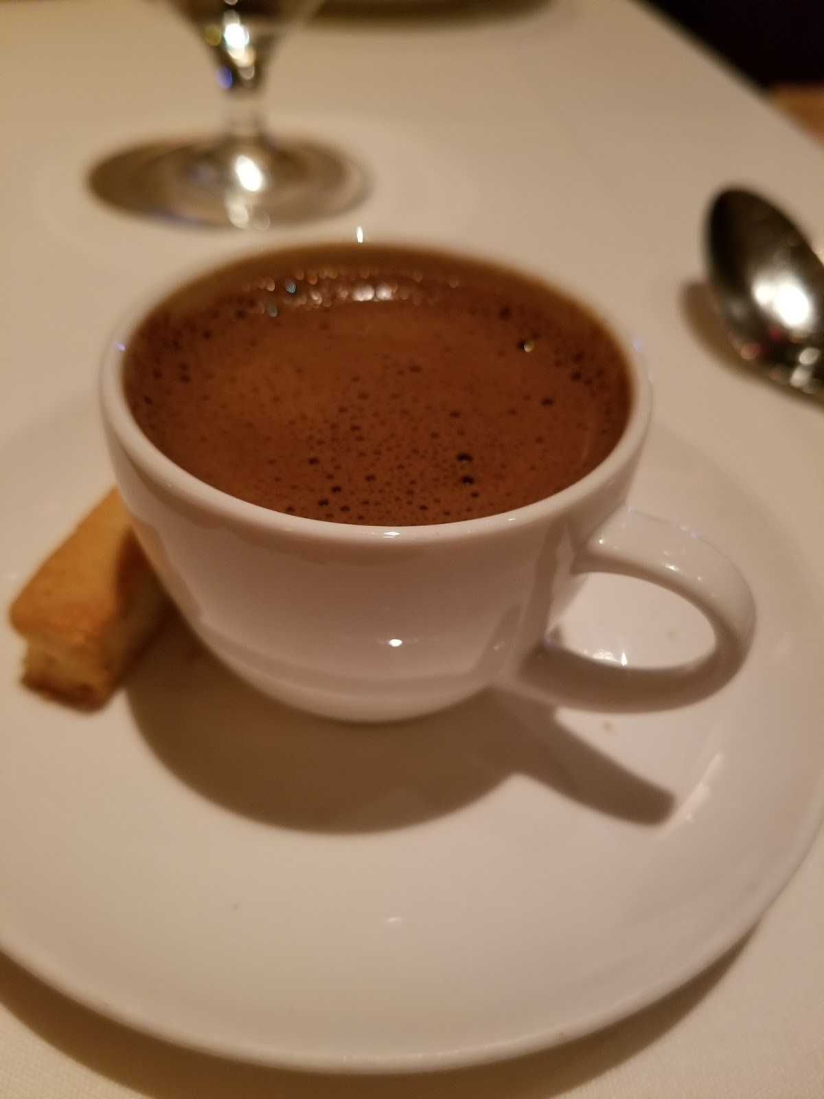 We were offered Greek Coffee and since I had no idea what Greek coffee was, I was game. For those of you not familiar with Greek Coffee, it is stone-ground coffee heated over hot sand. You could have it 3 ways, Sketo for no sugar, Metrio for medium sweet and Glyko for sweet. Mertz had hers sketo, Sujata had hers metrio and I had mine glyko. The coffee was very good but it was not sweet enough so when Peter came by I asked if he could add more sugar plus some cream. He whizzed my coffee away. In a couple of minutes my coffee was back and was 100% better.